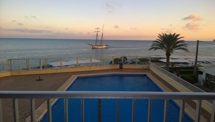 Ferienwohnung in absoluter Traumlage mit direktem Meerblick in zentraler Lage in der 1. Etage mit Aufzug. Wohn- Esszimmer mit Sat-TV, Küche mit Ceranfeld, Backofen, Kühl/Gefrierkombination, Spülmaschine und Kaffeemaschine 2 Schlafzimmer, Badezimmer mit Dusche. Balkon mit Gartenmöbeln und Sonnenschirm, ideal zum Frühstücken oder einfach nur um die Aussicht genießen. Gemeinschaftspool mit Poolterrasse. Es stehen 10 GB Internet pro Woche zur Verfügung, danach mit Aufpreis. Keine jugendlichen Gruppen erwünscht. Sonderpreis für 1-3 Personen.