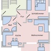 Im Schlafzimmer befindet sich ein Doppelbett und im Wohnzimmer ein Schlafsofa. Bei Bedarf kann auch zum Schlafsofa ein zusätzliches Bett in dem größzügigen Wohnzimmer aufgestellt werden.