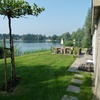 Der Wohnbereich hat Schiebetüren zur großen Terrasse mit Aussicht auf den See.