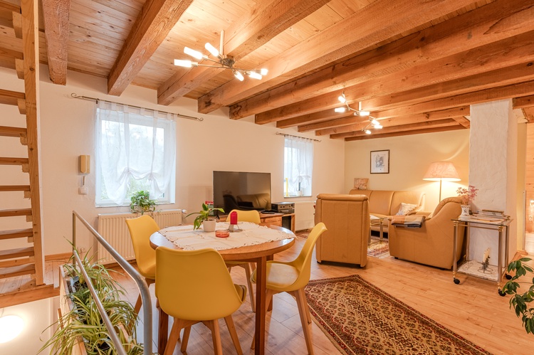 Wohnung A bietet im Parterre und 1. OG bis zu 6 Personen auf ca. 100 m2 Platz.