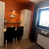 Wohnung (70 m2) bestehend aus: großer, geräumiger Halle mit Garderobe, großem Wohnzimmer mit offener (Wohn-)Küche. Die Küche ist ausgestattet mit: Glaskeramikkochfeld, Backofen, Mikrowelle, Geschirrspüler, Wasserkocher, Kaffeemaschine, Spüle mit fließendem kaltem und warmem Wasser, Besteck, Pfannen und allen anderen Küchengegenständen. 3 Schlafzimmer für maximal 6 Personen (davon maximal 4 Erwachsene). 1 Schlafzimmer mit einem großen Doppelbett (180×200), 1 Schlafzimmer mit 2 Einzelbetten (90×200) und 1 Schlafzimmer mit 1 Einzelbett (90×200) für 1 Person/Kind.. Badezimmer mit Walk-in Dusche, Waschbecken mit fließendem kaltem und warmem Wasser. Getrennte Toilette. Die freistehende Wohnung befindet sich im Erdgeschoss und ist über eine kleine Treppe mit 3 Stufen vom Straßenniveau aus zugänglich. Parkplätze stehen kostenlos zur Verfügung. Außerdem können Sie den großen Innenhofgarten mit Terrasse und Spielplatz in unserem angrenzenden Pensiongebäude nutzen.