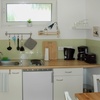 Elektroherd, Kühlschrank, Tiefkühlfach, Geschirreinrichtung, Wasserkocher, Kaffeemaschine, Toaster, Besteck, Gläser