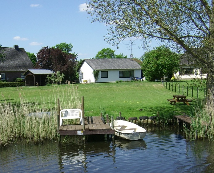 Vor dem Haus ist ein kleiner Garten, ein Carport und ein PKW-Stellplatz. Boote und Fahrräder stehen zur Verfügung.