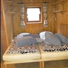Es gibt ein Doppel,ein Zweibettzimmer, Bad mit Dusche und WC und ein Wohnzimmer mit Küche im Holzhaus. Vom Wohnzimmer kommen Sie auf die teilweise überdachte Terrasse mit Grill und Sitzmöglichkeiten.