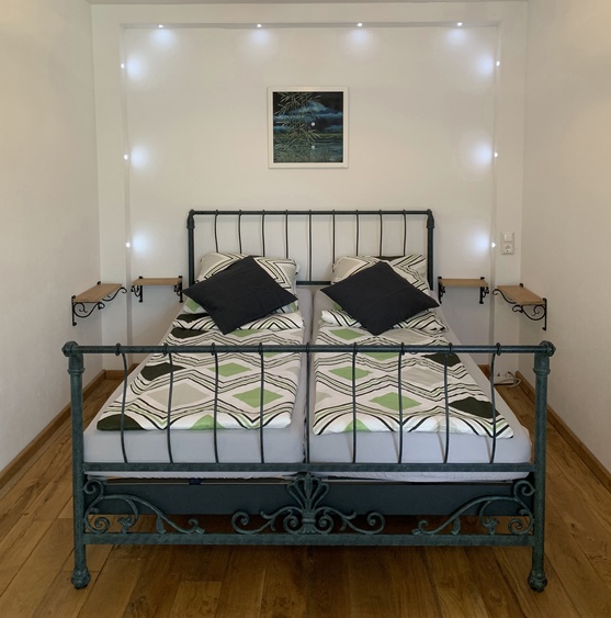 Unser gemütliches Apartment bietet Ihnen eine schöne Küchenzeile, ein modernes Bad sowie ein großes Doppelbett und eine Schlafcouch zum Ausziehen. Für Unterhaltung ist durch ein TV, eine Musikanlage und allerlei Bücher und Spiele gesorgt.