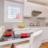 Gasherd, Kühlschrank, Tiefkühlfach, Geschirrspüler, Mikrowelle, Wasserkocher, Kaffeemaschine, Toaster, Eierkocher, Besteck, Gläser