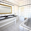 1 Badezimmer mit Duschwanne, WC und 2 Waschtischen