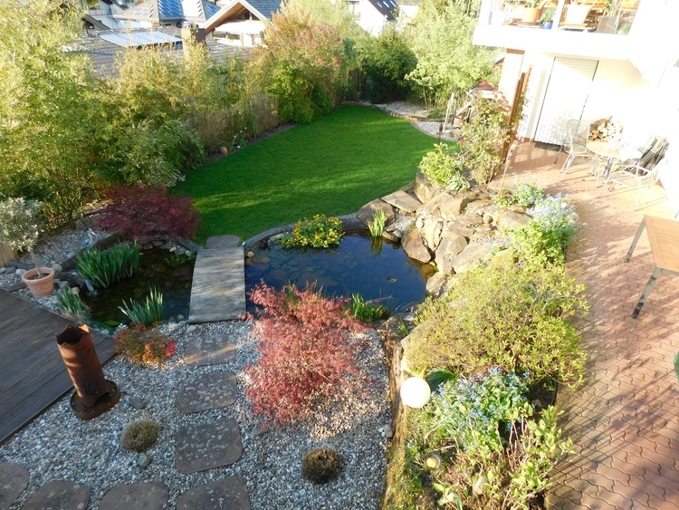 Garten mit Liegewiese am Teich