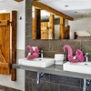 Im Erdgeschoss befinden sich ein großzügiges Badezimmer mit zwei Duschen und zwei WCs, im Obergeschoss steht ein weiteres WC zur Verfügung.