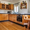 Elektroherd, Kühlschrank, Tiefkühlfach, Mikrowelle, Geschirreinrichtung, Wasserkocher, Kaffeemaschine, Besteck, Gläser