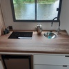 Gasherd, Kühlschrank, Tiefkühlfach, Geschirreinrichtung, Wasserkocher, Kaffeemaschine, Toaster, Besteck, Gläser