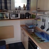 Elektroherd, Kühlschrank, Tiefkühlfach, Geschirrspüler, Mikrowelle, Wasserkocher, Kaffeemaschine, Toaster, Eierkocher, Besteck, Gläser