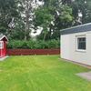 Es gibt ein geräumiges Gerätehaus zum Abstellen von Kinderwagen und mitgebrachten Fahrrädern.