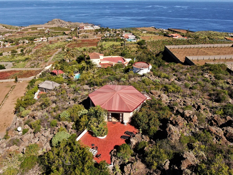 Dieses lichtdurchflutete Haus, eignet sich hervorragend für Familien, die ihren Urlaub im grünen Norden Teneriffas mit atemberaubender Aussicht genießen wollen. Es befindet sich im oberen Teil der Finca und hat die sechseckige Form eines Sonnenschirms. Der recht steile Anstieg zum Haus wird mit einer grandiosen Aussicht belohnt.
