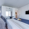 Bei dieser Wohnung sind spektakuläre Sonnenlichtspiele durch die zwei Balkone in Süd- und Westausrichtung zu erwarten. Der Einrichtungsstil entspricht der exklusiven Lage der Ferienwohnung: Klare Farben und Formen sowie der Einsatz natürlicher Materialien versprechen Ruhe und Rückzug, während einzelne Farbakzente für erfrischende Leichtigkeit sorgen.