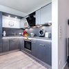 Elektroherd, Kühlschrank, Tiefkühlfach, Geschirrspüler, Mikrowelle, Geschirreinrichtung, Wasserkocher, Kaffeemaschine, Toaster, Besteck, Gläser