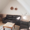 Die ca. 72 Quadratmeter große und komfortable Wohnung erstreckt sich über zwei Etagen und lädt zum Wohlfühlen ein. Sie betreten Ihre Ferienwohnung durch einen separaten Eingang im toll sanierten Dreiseitenhof. Im Ergeschoss finden Sie den Flur, das Badezimmer, die Küche sowie den Essbereich. Das Erdgeschoss ist mit Fußbodenheizung ausgestattet. Die obere Etage erreichen Sie über eine moderne Holztreppe. Oben befindet sich der große Wohnbereich mit Schlafcouch für 2 Personen, Fernsehecke sowie die Spieleecke mit Tischkicker. In das Schlafzimmer für zwei Personen (moderne, bequeme Boxspringbetten) gelangen Sie durch originelle Schwingtüren. Handtücher und Bettwäsche sind im Preis enthalten.