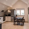 Das Apartment im EG mit großer Terrasse ist für max. 3 -4 Personen geeignet ( 3 EW oder 2 EW und 2 Kinder) Küche, Bad mit Walk-In Dusche, Flur, Wohnraum mit Ausziehsofa 140 x 200, Schlafzimmer Bett 180 x 200, Terrasse und Garage mit Waschmaschine für die Gäste.