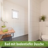 Das geräumige Bad ist ausgestattet mit bodenebener Dusche und WC, sowie einem Handtuchheizkörper.