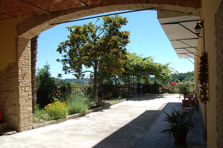 For the sun-lovers there is a large sun terrace on the first floor with a panoramic view of the surrounding hills. On the ground floor you'll find a spacious courtyard, with a pergola covered by an old kiwi tree and a covered terrace with a dining table.