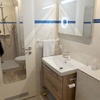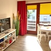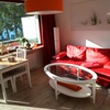 Das Duschbad ist modern und seniorengerecht. Die Küchenzeile ist mit Kühlschrank, Kochfeld sowie Mikrowelle/Grill ausgestattet. Ein großer Balkon mit Sonnenliege & Esstisch bietet Platz für 2 Personen.