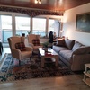Die Polstergarnitur im Wohnzimmer bietet ebenso Platz für 2 Personen (ausziehbar auf 2 m x 1,60 m).