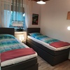 Die Wohnung verfügt über ein Schlafzimmer mit 2 einzelnen Boxspringbetten und einem Schlafsofa (2,06 m x 1,40 m) in Überlänge für max. 4 Personen. Sowie befinden sich zwei weitere einzelne Boxspringbetten in dem zweiten Schlafzimmer. Genug Schränke und Aufbewahrungsmöglichkeiten sind vorhanden.