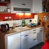 Elektroherd, Kühlschrank, Tiefkühlfach, Geschirreinrichtung, Wasserkocher, Kaffeemaschine, Toaster, Besteck, Gläser