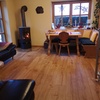 Die große Terrasse mit Esstisch, großem Sonnenschirm und Bestuhlung für sechs Personen, laden zum Grillen und zum gemütlichen Beisammensein ein. Eine Feuerstelle für kühle Abende sowie ein Grill sind vorhanden.