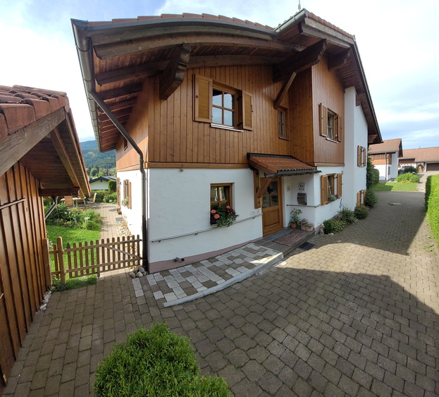 Fußläufig vom kleinen Regionalbahn-Bahnhof Nesselwang entfernt, am Ende einer unbefahrenen Privatstraße im Wohn-/Mischgebiet auf ca. 850 Höhenmetern, liegt unser sonnendurchflutetes und barrierefreies Ferienhaus, das sich über 2 Etagen erstreckt. Im Erdgeschoss befindet sich die separate Küche mit Blick in den großen Garten. Das Wohnzimmer mit Kamin und Zugang zur Terrasse im großen Garten, verfügt über ein großes Lederecksofa und ein großes Smart-TV. Das Gäste-WC befindet sich unmittelbar an der Hauseingangstür. Die Treppe zur 1. Etage verfügt über einen Treppenlift. Dort befindet sich das barrierefreie Duschbad/WC und das große Schlafzimmer mit einem 2,00 m x 2,00 m großen Doppelbett und einer zusätzlichen Couch, die auch als Schlafcouch mit einer Liegefläche von 1,60 m x 1,95 m genutzt werden kann. Somit verfügt dieses 'Familien-Schlafzimmer' über insgesamt 4 Schlafplätze. Das zweite kleinere Schlafzimmer verfügt über ein Schreiner-Doppelbett mit einer Liegefläche von 1,60 x 2,00 m. Beide Schlafzimmer verfügen über ein großes Smart-TV.