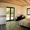 Ferienwohnung in seperatem Gebäude im 1. OG - vollausgestattete Küche - Terrasse zum Wald - große Fachwerk-Glas-Panoramawand - offener Ess- Wohnbereich - Bad mit ebenerd. Dusche und Whirlpoolwanne - Flur, Bad, Küche mit Fußbodenheizung - Schlafzimmer mit Boxspringbett 1,80m x 2,00m - E-Fahrräder aufladen im Carport, Pkw-Stellplatz kostenfrei im Hof