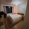 1 Schlafzimmer mit Bett (140cm breit), Regal mit Fernseher, Kleiderschrank, Bettwäsche, Handtücher.