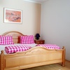 Im separaten Schlafraum steht ein 1,80 m großes Doppelbett. Im Wohnbereich befindet sich Esstisch und eine Schlafcouch für max. 2 Personen.
