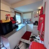 Elektroherd, Kühlschrank, Tiefkühlfach, Geschirrspüler, Geschirreinrichtung, Wasserkocher, Kaffeemaschine, Toaster, Eierkocher, Besteck, Gläser