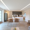 Kühlschrank, Tiefkühlfach, Geschirrspüler, Geschirreinrichtung, Wasserkocher, Kaffeemaschine, Toaster, Besteck, Gläser