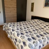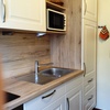 Die Wohnung selbst verfügt über ein großes Wohnzimmer mit angrenzender verglaster und überdachter Terrasse, einer offenen Küche, einem Schlafzimmer mit Doppelbett und einem weiteren mit einem stabilen Etagenbett und einem Bad mit Dusche, Badewanne und Bidet.