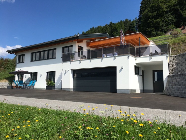 Unser 2016 neu erbautes Haus liegt in ruhiger Südhanglage am Sonnenbalkon Bartholomäberg auf 1100m, mit herrlichem Ausblick auf die Bergwelt des Montafons.