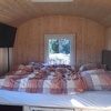 Unser Zirkuswagen bietet Romantik pur, ein Tiny House für zwei mitten in unserem wunderschönen Garten gelegen. In das Doppelbett (160 x 200 cm) gelangt man über eine zusätzliche Stufe, darunter befindet sich eine Kommode sowie kleine Einbauschränke für Stauraum. Oberhalb der Kommode ist ein ausziehbarer Tisch eingebaut. Im Buffet sind alle Basics untergebracht, die man zum Frühstücken braucht, zudem weiterer Stauraum und ein kleiner Staubsauger. Im Mini-Kühlschrank gleich neben der Tür ist Platz für jede Menge Kleinigkeiten wie Milch, Saft, Eier und Marmelade. Eine Heizung sorgt Tag und Nacht für gemütliche Temperaturen.