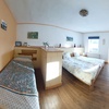 Am 1. Stock gibt es 3 Schlafzimmer, das Hauptschlafzimmer mit Doppelbett + Einzelbett, die anderen Schlafzimmer mit Doppelbett. Hier ist auch die Badezimmer mit Dusche + WC. Auf Wunsch stellen wir Ihnen ein Babybett zur Verfügung.