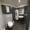 Badezimmer mit Dusche und WC.