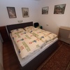 ein Schlafzimmer mit Boxspringbett und ein WC mit Dusche!