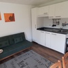 Unser Ferienhaus hat ein Wohnzimmer mit Fernseher, freies WLAN, Küchenzeile,