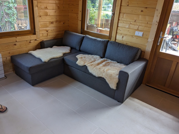 52m2 Ferienhaus mit 2Liegen und Hollywoodschaukel und Badeschwimmfloss. Feuerschale und WLAN und Sat-TV zur Verfügung gestellt. Backofen, Ceranfeld, Spülmaschine, Kaffeemaschine und Wasserkocher und Toaster und Eierkocher sind zur Verfügung gestellt.