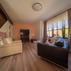 Paterre befinden sich ein seperates WC, komplett eingerichtete Küche und ein großes Wohnzimmer mit Eßtisch, Couch und Sessel und großem TV.