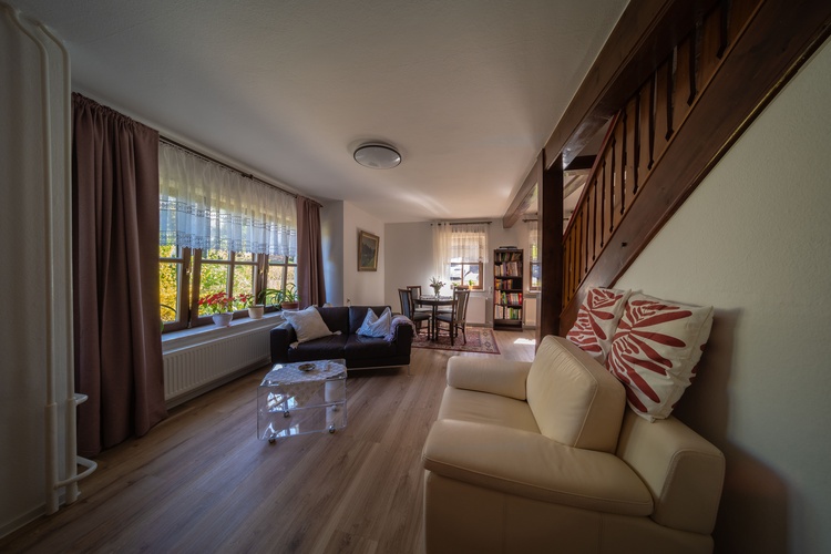 Ferienhaus direkt am Landgasthof Waldeck in Pobershau mit seperatem Eingang und eigener kleiner Sonnenterrasse, mit Blick zur Kirche und ins Tal der roten Pockau,