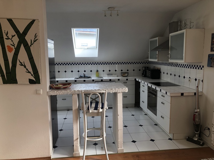 Elektroherd, Kühlschrank, Tiefkühlfach, Geschirrspüler, Geschirreinrichtung, Wasserkocher, Kaffeemaschine, Besteck, Gläser