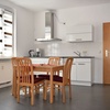 Elektroherd, Kühlschrank, Tiefkühlfach, Mikrowelle, Geschirreinrichtung, Wasserkocher, Kaffeemaschine, Toaster, Besteck, Gläser