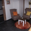 In der Ecke gegenüber befinden sich 2 gemütliche Ohrensessel & ein kleiner Tisch mit Steh / Leselampe.