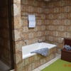 Ein großes Bad mit Dusche und Badewanne, zwei Waschbecken, und nochmal ein extra WC sind vorhanden.