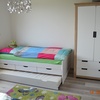 Betten: es handelt sich um zwei Schlafzimmer mit je einem Doppelbett, und ein drei Bett Zimmer mit einem zusätzlichem Bett das man ausziehen kann. Dieses Ausziehbett ist nicht für Personen über 35 kg geeignet. Des weitern können wir Ihnen ein Kinderbett ( Reisebett) zur Verfügung stellen. Zwei weitere Personen können bequem auf der Wohnlandschaft schlafen. In der Regel ist die Anfahrt NICHT vor 17.00 Uhr möglich, Ausnahmen bestätigen die Regel, bitte nachfragen. Check-out immer spätestens 10.00 Uhr!